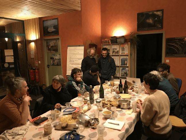 Janvier 2026. Retour en réunion. Voilà un an que le collectif existe. Comme vous voyez, les bières sont toujours sur la table (avec les crèpes, et les tisanes).